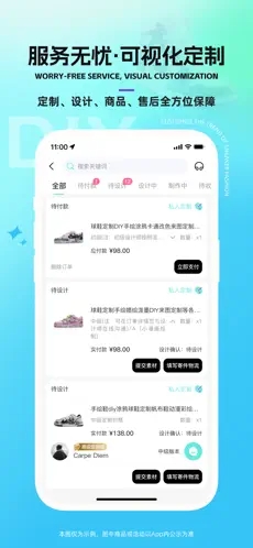 我們提供定制、設(shè)計(jì)、商品、售后、服務(wù)五大保障,全程可視化跟蹤,讓你隨時(shí)掌握定制進(jìn)度。從商品開(kāi)箱記錄到球鞋設(shè)計(jì)滿意,再到定制成品鞋滿意,我們?nèi)套o(hù)航。更有超長(zhǎng)售后保障,讓你無(wú)后顧之憂。